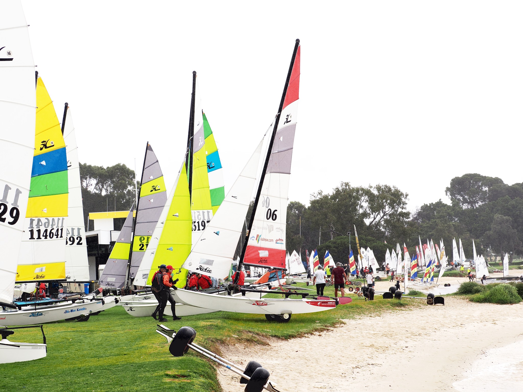 The club summer season is about to begin in Western Australia as sailing clubs around the state prepare for their annual Opening Day events. To get the catamaran sailing community together and shake off the winter blues, the Hobie Cat Association of WA host a two day regatta for boats less than 6.8m on the last weekend in September each year. Nedlands Yacht Club is the host and 2025 was very special with the club hosting the Australian Sailing WA Youthsail event alongside the annual multihull regatta. With a shiny new Sail Training Centre building and the same impressive rigging lawn, Nedlands Yacht Club easily hosted the 174 boats and put on a great show.