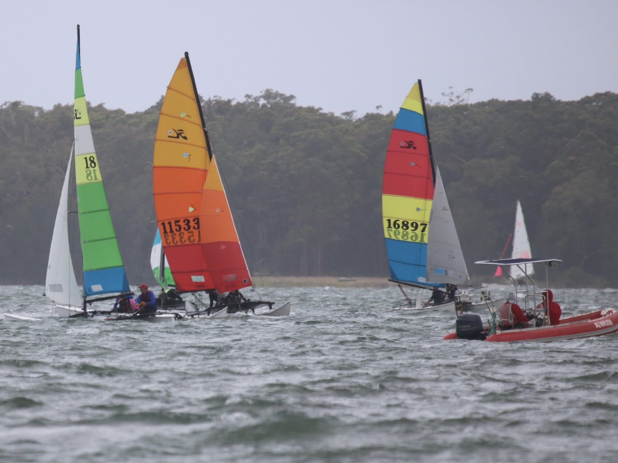 The next NSW State Championships are scheduled for 14–15 February 2026 at Wangi Wangi, featuring the Hobie 14 Cat Rig, Hobie 18/16 Women & Youth, Dragoons and Waves.