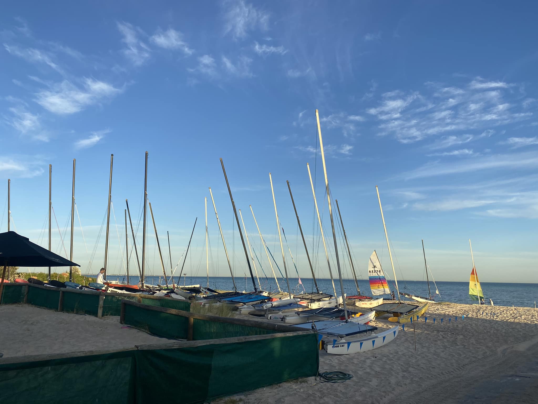 Monday, the final day, greeted us with more light winds. We launched by 9 a.m., but by 9:30 a.m., the breeze had faded to nothing. We sailed back to shore, where Cam and Suzzie ran a coaching session on the beach while we waited for conditions to improve. Unfortunately, the wind never returned, and the regatta was officially declared over.