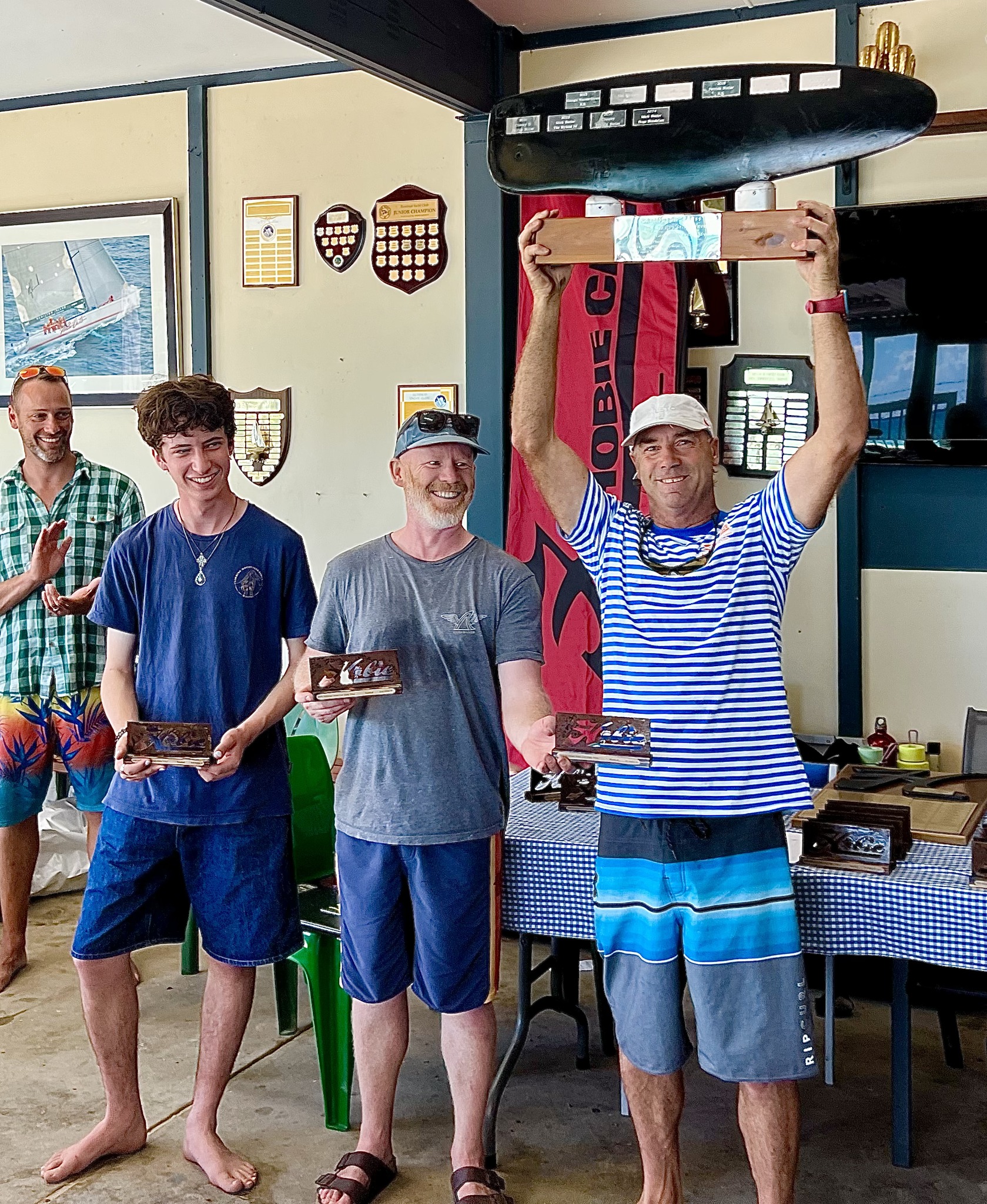 Sunday morning dawned with more light northerlies. Racing kicked off at 9:30 a.m., with four back-to-back races. The full moon had created a powerful ebb tide, but with our lessons from Saturday, we managed to complete the course. The key was tacking towards the safety of the shallows to counteract the current, overlaying the weather mark by a good 200 meters to compensate for the drift.